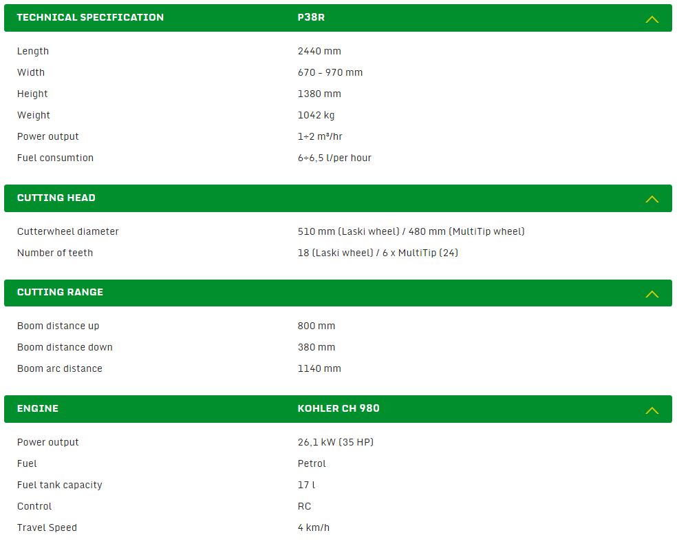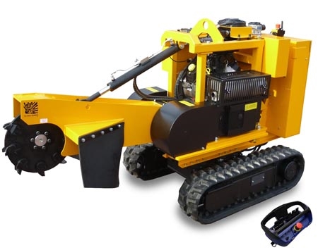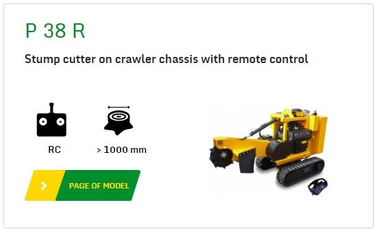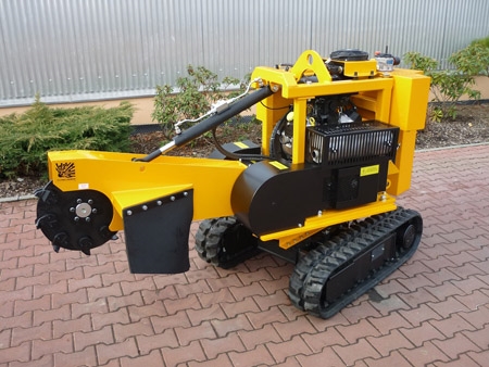 Stump cutter on crawler chassis and sturdy base. Expandable chassis ensures stability of the machine and allows you to work in inaccessible terrain. You can choose between manual or remote control of machine. It si very compact and versatile, Low centre of gravity, Easy and quick maintenance.