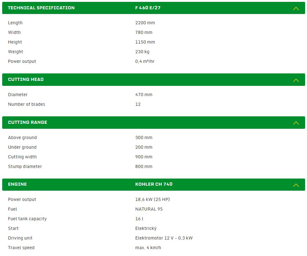 Our new stump cutter LASKI F460 is based on long-term experiences with our field-proven model LASKI F450. This machine is designed for cutting of above- and under-ground stump parts by cutting in a swinging way. Unlimited maximum diameter of the stump to be cut (recommended upto 0,8 m). Due to its swivel base this machine newly facilitates swinging motions of the head also horizontally. Automatic locks of the upper turnable part of its chassis and easy machine attendance facilitate any handling. Its swivel base and overall width of 780 mm make also limited spaces and narrow sites more accessible. Instantaneous activation of the cutting head brake after release of the dead-man lever on the grip reduces the run-out time of the head to 4 seconds.