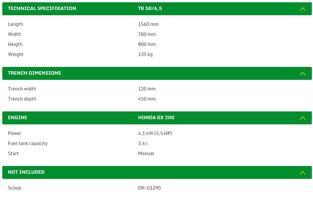 Loose soil is displaced by means of an auger aside from the trench which enables easy trench refilling. Compact design of the trencher, its engine power output and play of forces make its operation and control very easy.