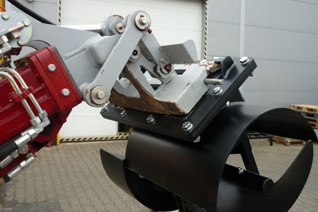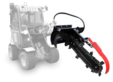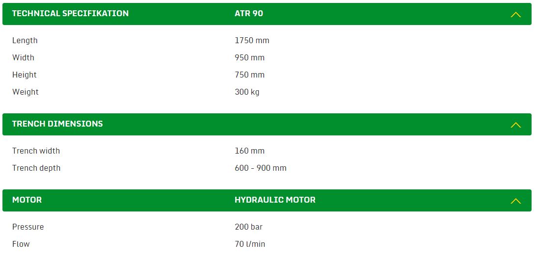 The trencher ATR-90, as an implement coupled to a power source / carrier with an external hydraulic circuit, facilitates trenching works at cables and irrigation pipelines lying in