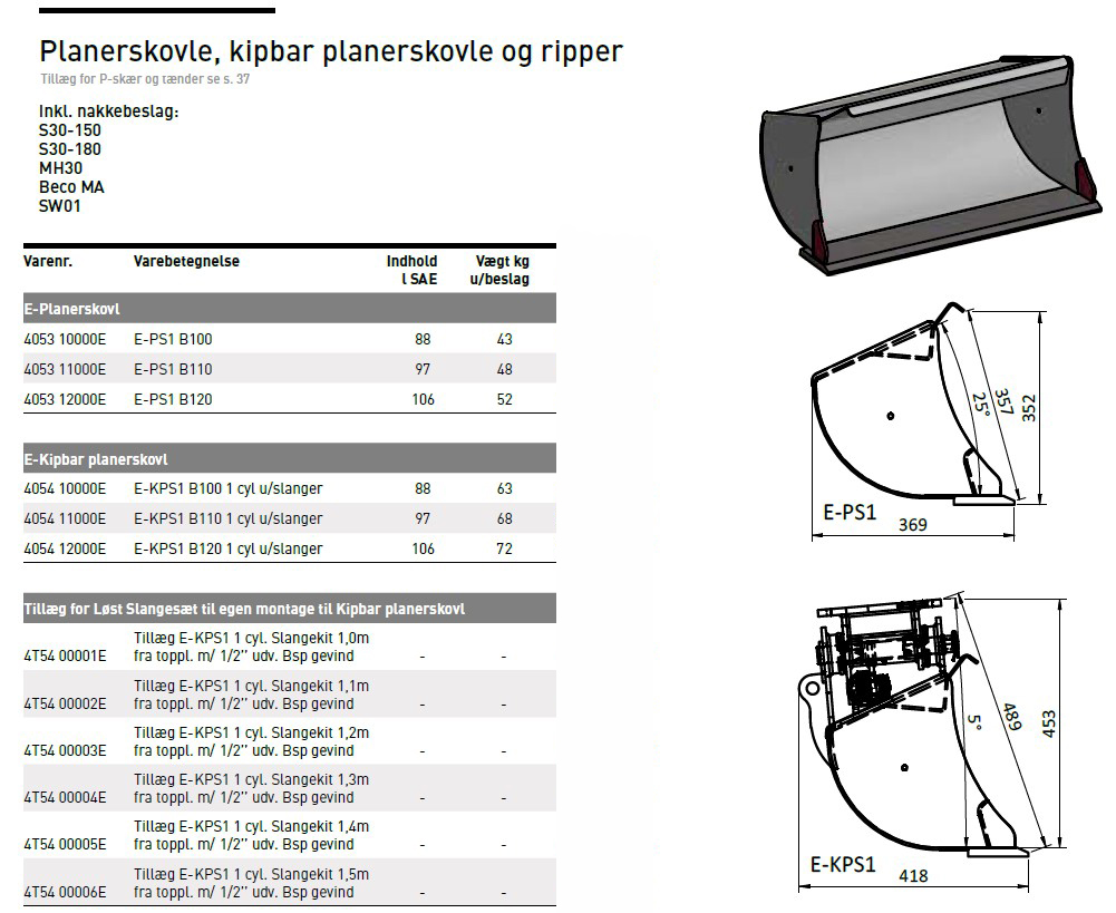 JST E-PS1 Planerskovl passer til minigravere fra 1.400-2.000 kg.