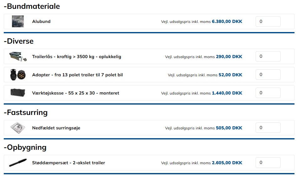 Traileren kan konfigureres med trailerlås for øget tyverisikring, nedfældet surringsøje for fleksibel fastgørelse af lasten, og en værktøjskasse til opbevaring af udstyr og tilbehør.