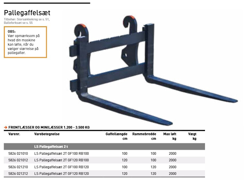 Med 100 eller 120 cm. gafler: 7.900 DKK excl. moms.