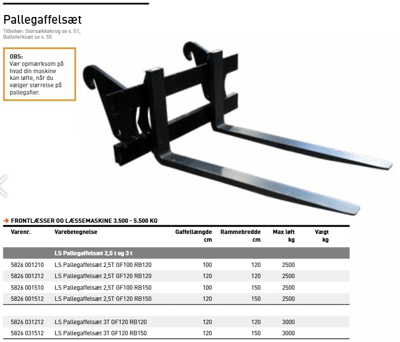 Pallegaflerne passer til gummihjulslæsser fra 3.500-5.500 kg.