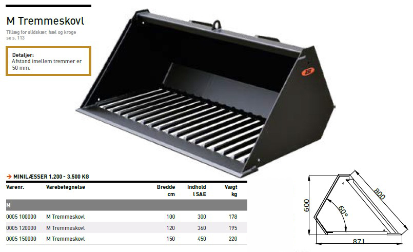 Skovlen passer til minilæsser fra 1.200-3.500 kg.